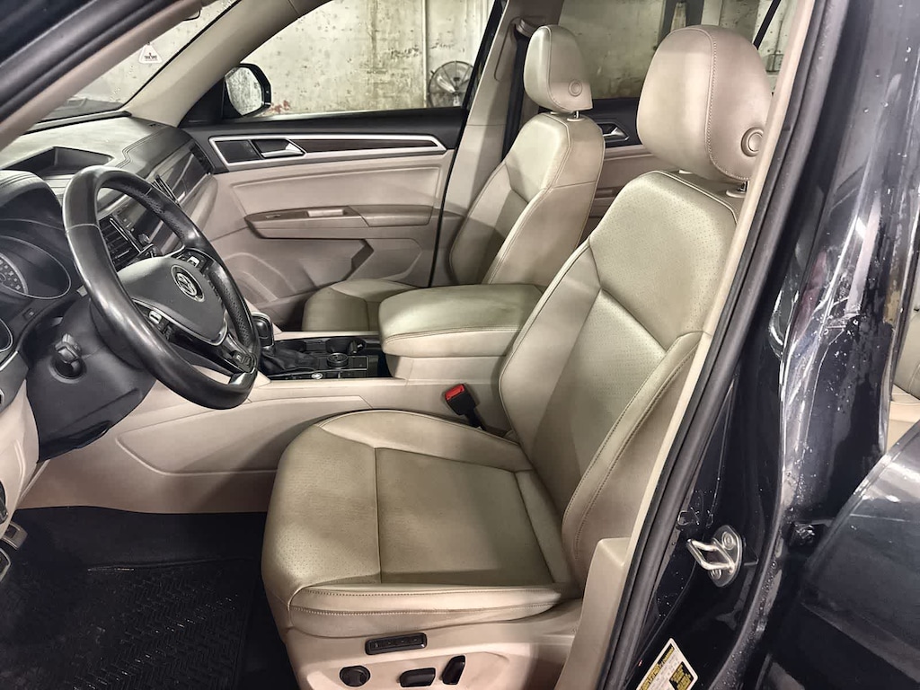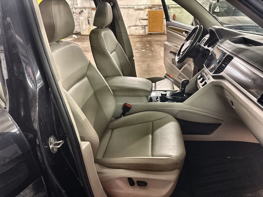 Inside, the Atlas SEL offers comfort and flexibility with VTex leatherette seating, memory driver seat, power front seats, trizone climate control, a panoramic power moonroof, Power Liftgate, and a spacious 3row cabin with splitfolding second and third rows. Technology features include an 8 Composition Media touchscreen, SiriusXM capability, AM/FM/HD radio, Apple CarPlay/Android Auto (vehicle dependent), Bluetooth, HomeLink, and a rearview camera.