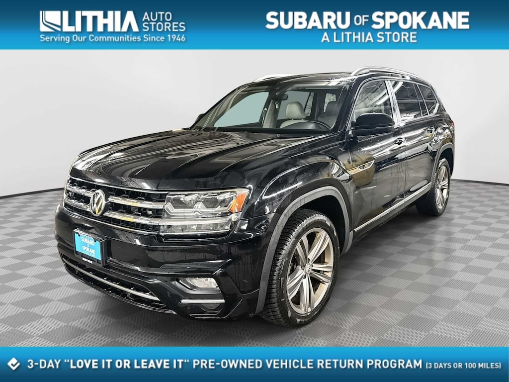 Black Metallic 2018 Volkswagen Atlas SEL 4Motion AWD with an 8Speed Automatic and the powerful 3.6L V6 engine. This Atlas SEL is an excellent 3row SUV for winter driving in Spokane, featuring VWs 4Motion AWD system designed for maximum traction on snow, slush, and icy roads throughout Spokane Valley, Liberty Lake, Post Falls, and Coeur dAlene. With strong performance, roomy seating, and premium features, its ideal for families navigating Inland Northwest winters.