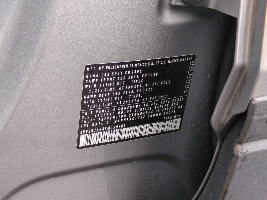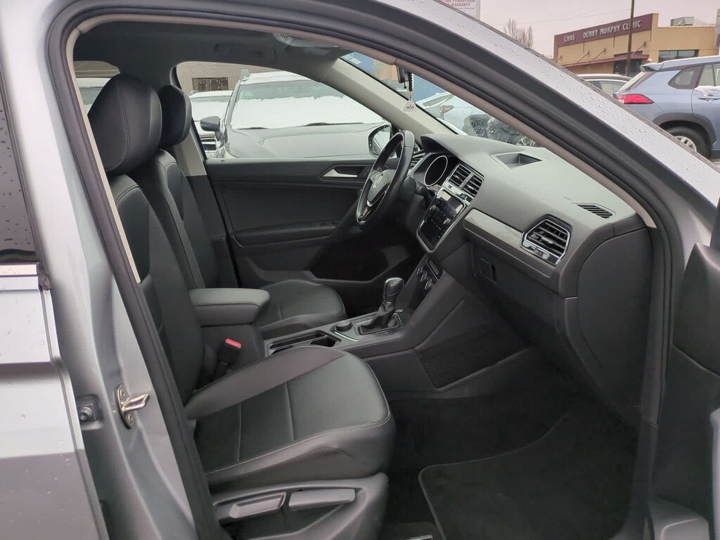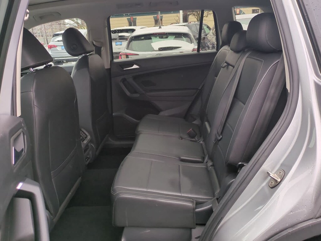 CARFAX One-Owner. Silver Metallic 2019 Volkswagen Tiguan 2.0T SE 4Motion AWD 8-Speed Automatic with Tiptronic 2.0L TSI DOHC AWD, 2-Row Rubber Mats Kit, 3.33 Axle Ratio, 4-Wheel Disc Brakes, 4-Wheel Independent Suspension, 6 Speakers, ABS brakes, Air Conditioning, Alloy wheels, AM/FM radio: SiriusXM, Automatic temperature control, Brake assist, Bumpers: body-color, Compass, Delay-off headlights, Driver door bin, Driver vanity mirror, Dual front impact airbags, Dual front side impact airbags, Electronic Stability Control, Exterior Parking Camera Rear, Forward collision: FCW w/Autonomous Emergency Braking mitigation, Four wheel independent suspension, Front anti-roll bar, Front Bucket Seats, Front Center Armrest, Front dual zone A/C, Front reading lights, Fully automatic headlights, Heated door mirrors, Heated Front Comfort Seats, Heated front seats, Heavy Duty Trunk Liner w/VW CarGo Blocks, Illuminated entry, Leather Shift Knob, Low tire pressure warning, Luggage Net, Occupant sensing airbag, Outside temperature display, Overhead airbag, Overhead console, Panic alarm, Panoramic Sunroof Package, Passenger door bin, Passenger vanity mirror, Perforated V-Tex Leatherette Seating Surfaces, Power door mirrors, Power driver seat, Power steering, Power windows, Radio data system, Radio: Composition Media AM/FM/HD, Rear anti-roll bar, Rear reading lights, Rear seat center armrest, Rear window defroster, Rear window wiper, Remote CD player, Remote keyless entry, Roadside Assistance Kit, Roof rack: rails only, Security system, Speed control, Speed-sensing steering, Split folding rear seat, Spoiler, Steering wheel mounted audio controls, Tachometer, Telescoping steering wheel, Tilt steering wheel, Traction control, Trip computer, Turn signal indicator mirrors, Variably intermittent wipers, VW Care, Wheels: 17 Wide Multi-Spoke 2-Tone Alloy, AWD.