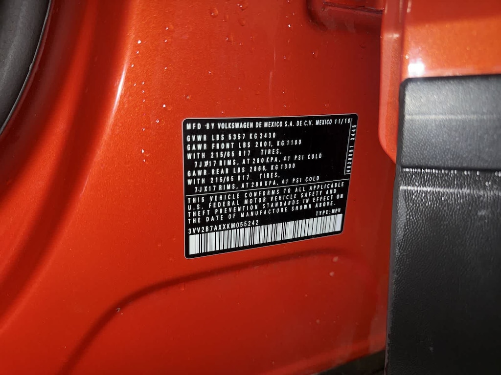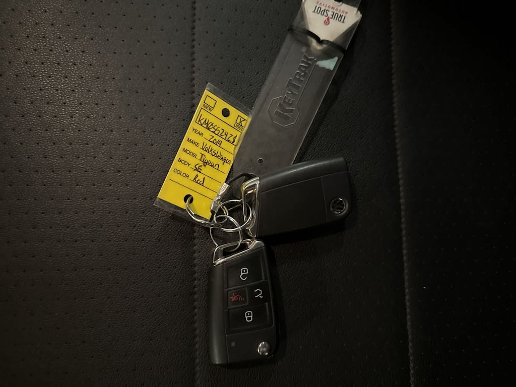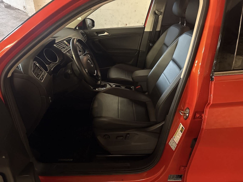 CARFAX One-Owner. Clean CARFAX. Habanero Orange Metallic 2019 Volkswagen Tiguan 2.0T SE 4Motion AWD 8-Speed Automatic with Tiptronic 2.0L TSI DOHC AWD, 3.33 Axle Ratio, 3rd Row Seat Package, 4-Wheel Disc Brakes, 4-Wheel Independent Suspension, 6 Speakers, ABS brakes, Air Conditioning, Alloy wheels, AM/FM radio: SiriusXM, Automatic temperature control, Brake assist, Bumpers: body-color, Compass, Delay-off headlights, Driver door bin, Driver vanity mirror, Dual front impact airbags, Dual front side impact airbags, Electronic Stability Control, Exterior Parking Camera Rear, First Aid Kit, Forward collision: FCW w/Autonomous Emergency Braking mitigation, Four wheel independent suspension, Front anti-roll bar, Front Bucket Seats, Front Center Armrest, Front dual zone A/C, Front reading lights, Fully automatic headlights, Heated door mirrors, Heated Front Comfort Seats, Heated front seats, Illuminated entry, Leather Shift Knob, Low tire pressure warning, Luggage Net, Occupant sensing airbag, Outside temperature display, Overhead airbag, Overhead console, Panic alarm, Passenger door bin, Passenger vanity mirror, Perforated V-Tex Leatherette Seating Surfaces, Power door mirrors, Power driver seat, Power steering, Power windows, Radio data system, Radio: Composition Media AM/FM/HD, Rear anti-roll bar, Rear