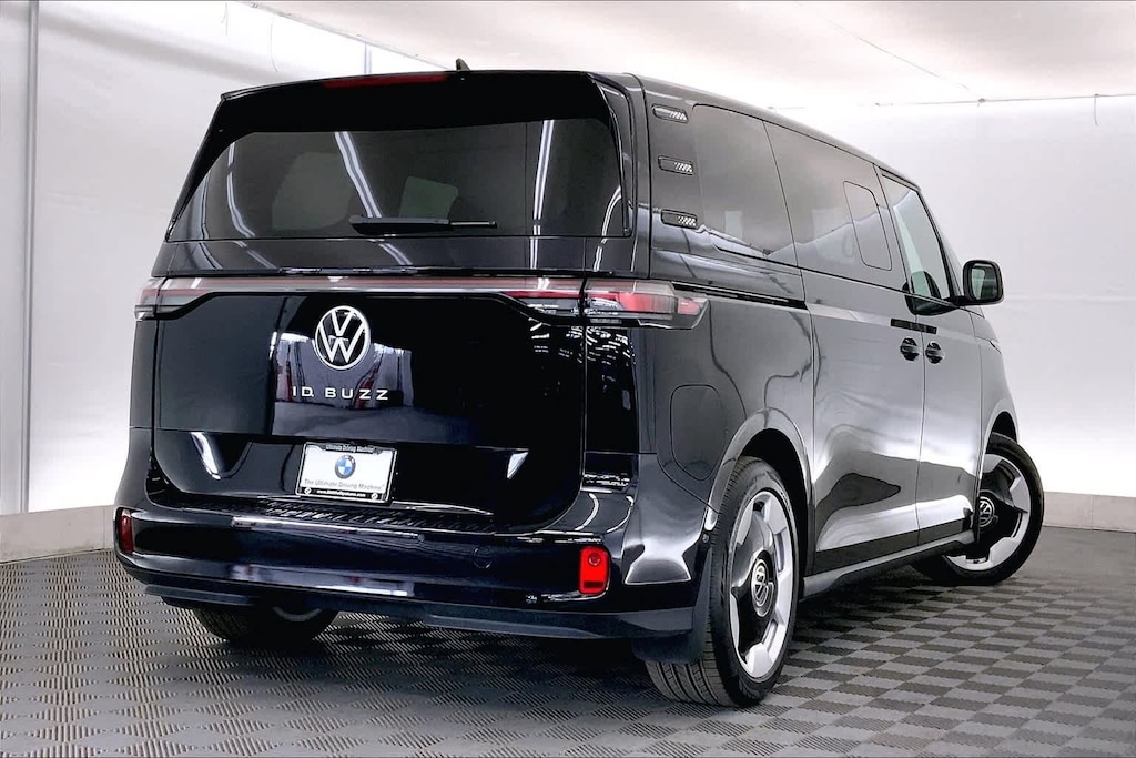 CARFAX One-Owner. Deep Black Pearl 2025 Volkswagen ID. Buzz Pro S RWD Single-Speed Automatic Electric Motor ABS brakes, Alloy wheels, Bumpers: body-color, Electronic Stability Control, Front dual zone A/C, Heated door mirrors, Heated front seats, Heated rear seats, Illuminated entry, Low tire pressure warning, Navigation System, Power door mirrors, Power Liftgate, Remote keyless entry, Spoiler, Traction control, Turn signal indicator mirrors.